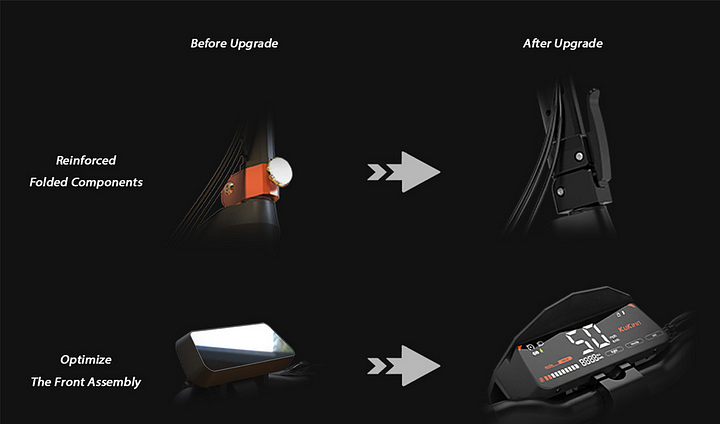 The traditional single light design before the upgrade has limited visibility at night. The information display function is limited and the operation experience is relatively basic.After the upgrade: Improve the safety and visual appeal of night driving. The touch screen displays rich information and provides convenience for driving.