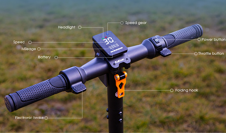A one-touch power switch allows you to easily turn the scooter on and off.The display provides real-time data at a glance, and you can see the current speed, which is updated instantly when you accelerate or decelerate.The mileage is also clearly displayed, so you always know how far you have traveled. In addition, the on-screen battery level indicator lets you know the remaining power, helping you plan your trip and avoid unexpected stops.The throttle button is responsive and can achieve smooth acceleration with a light press, allowing you to adjust the speed according to traffic or terrain.